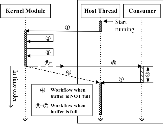 - 切換模式:Kernel 強制 CPU 跳轉去執行 Threadlet (Consumer) 的程式碼,如圖中 5 - 7