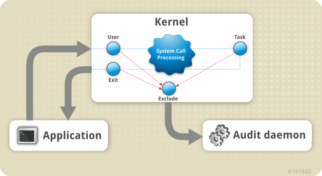 - Kernel: 捕捉到不同的 Process 做了什麼事件,把事件 Log 傳給 Audit daemon